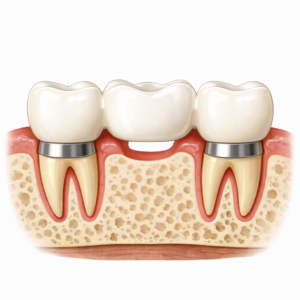 ブリッジは、両隣の歯を土台にして連結した歯を入れる治療です。